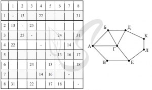 1. Понимание задачи: Для начала, нужно осознать, что нам даны два независимых источника информации: графическая схема дорог Н-ского района и таблица с расстояниями между пунктами. Поскольку нумерация в таблице и обозначения в графе различаются, нам необходимо установить соответствие между ними.