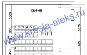 - Нумерация стульев идет от 1 до 14 в первом ряду, от 15 до 28 во втором и так далее.