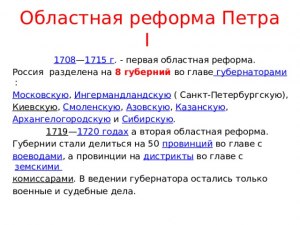 - Губернская реформа Петра I здоровья была важным шагом на пути к созданию более организованной и более контролируемой административной структуры. Она позволила России лучше справляться с вызовами времени и подготовила почву для дальнейших преобразований.