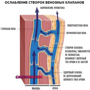 Ослабленность венозных стенок также играет свою роль в формировании варикозного расширения вен, но она является вторичной по отношению к ослабленности венозных клапанов. Ослабленные стенки вен могут привести к их увеличению и деформации, но именно недостаточная функция клапанов является основной причиной образования варикозных заболеваний.